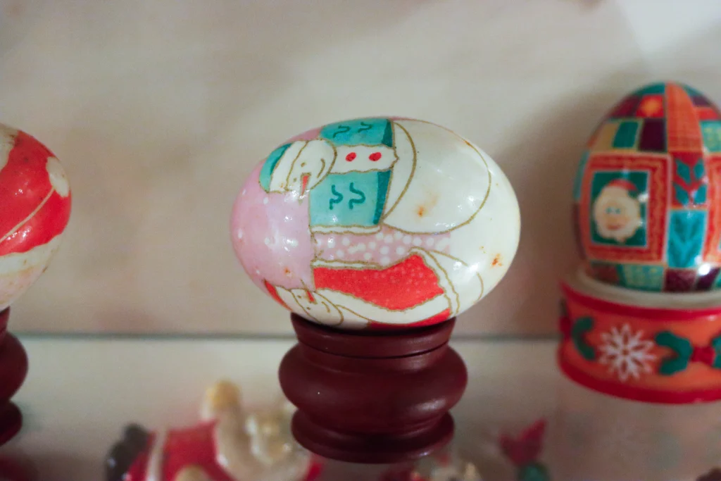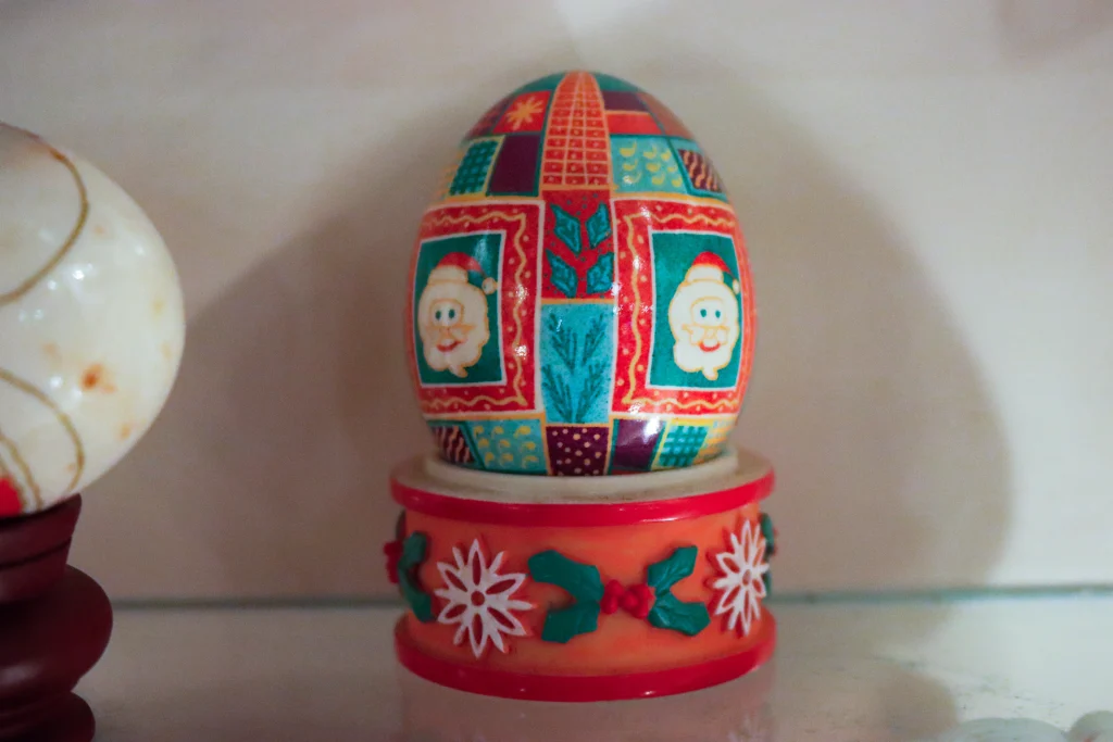 These are the biggest eggs from Buenos Aires, Argentia. Imagery of Santa was painted on them.